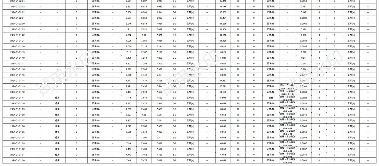 2024年1月1日至1月31日水質在線總排口數據